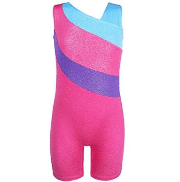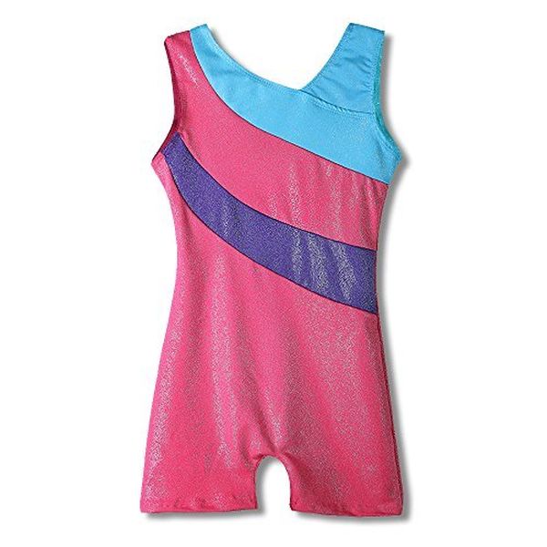 Holding the second position of the Top 10 Best Gymnastics Leotards Reviews in 2019; the TFJH one piece leotard comes in the classic black color. To give it freshness, the touch of blue and pink adds to the shimmery look of the leotard. The material is a blend of polyester and spandex.