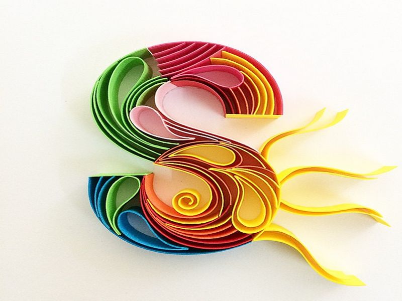 Sabeena Karnik, an Indian artist, has used paper strips of different colors to create exquisitely beautiful typography. She has designed all the 26 letters of the English alphabet, using paper loops and whorls along with thin strips used vertically and horizontally.