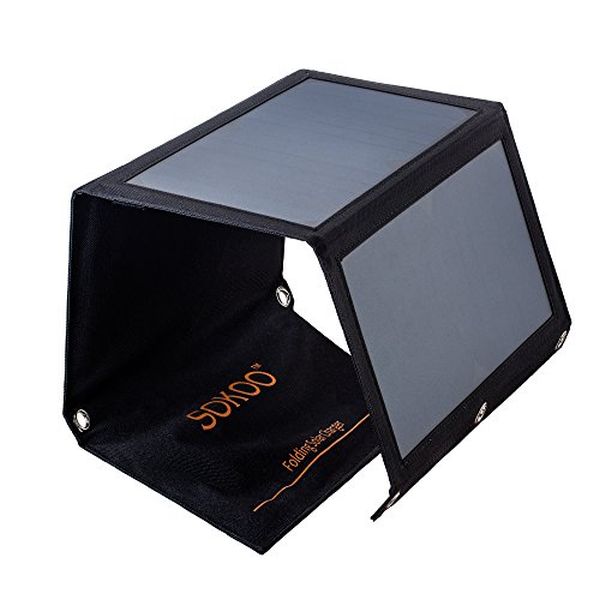Sokoo can charge your smartphone with solar energy. It comes encased in rugged canvas which enables it to withstand rain or drops of water, though you should not actively go about dousing it in water. It has two USB ports which allow you charge two devices at the same time. According to the manufacturer, the solar panels have incredible rates of conversion, and it’s smart IC detects the kind of device that is being charged, and offers the suitable power output.