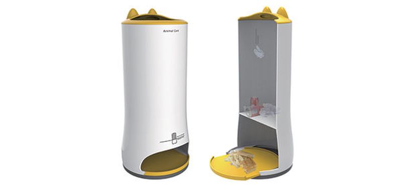 The Animal-Friendly trash can is a Red Dot award winning design concept. The design of this trash can covers the smart way of dumping waste along with the animal welfare. The trash can comprise of two different sections. Its upper section is for the disposal of normal household garbage while the lower section has a small opening face with a pullout tray integrated in it. User can use the tray to put extra food on it for animals to prevent the food wastage. The tray in the lower section is easily removable for cleaning purposes.