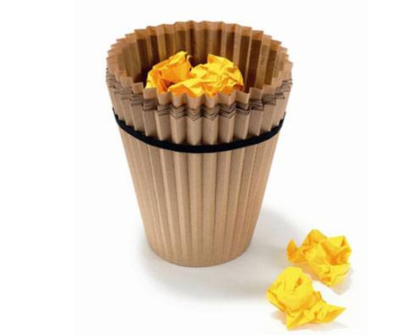 Fabriano waste-paper bucket is an innovative idea of utilizing recycled paper for garbage disposal. The trash basket has 50 disposable paper bags, made from recycled paper. When the basket is full of garbage, you have to pull the bag out and have to throw it away. The next layer of a disposable bag is ready to collect more trash.