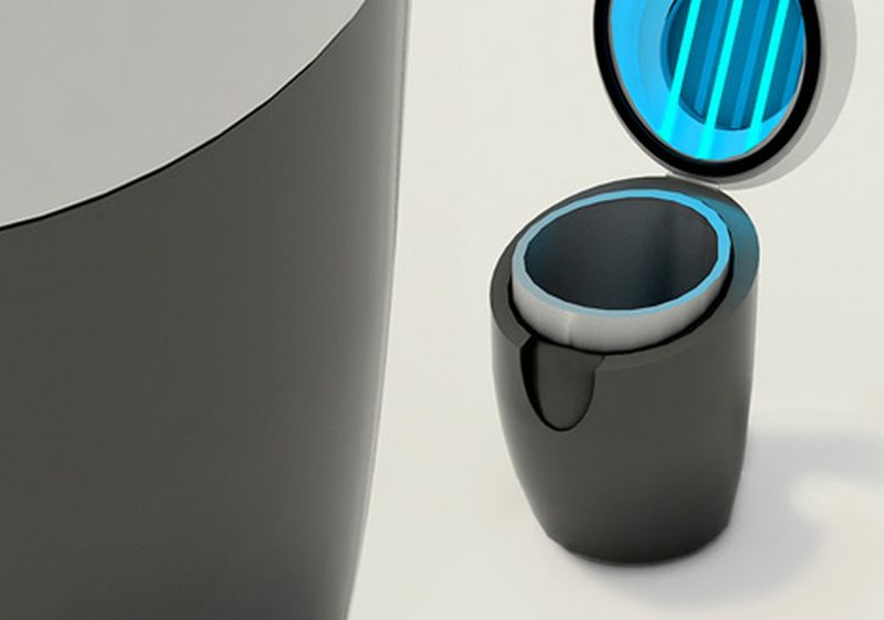 Minus garbage bin is a conceptual garbage bin, which is capable of freezing organic trash. This product uses a cooling grid, which eliminates the smell present in the organic waste. The frozen garbage leaves no marks inside the bin, which allows user for a cleaner disposal of waste. It features an integrated antibacterial UV light, which kills bacteria present in the organic garbage. The top cover of this garbage bin is transparent so that user can see the available space inside the trash bin.