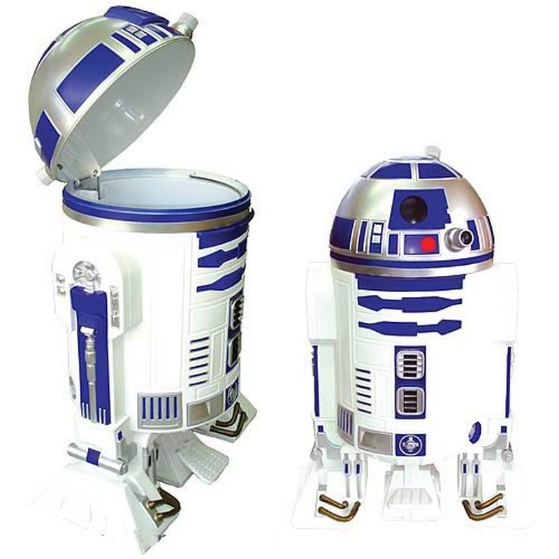 This beautiful and stylish trashcan is a modern trashcan based on the design of a R2-D2 robot.It has a dome-shaped top lid, which opens up when user step up on the pedal of the robot. The dome swings wide to collect the trash in it. Its removable interior makes it easy to dump the trash from the bin. It has a durable vinyl construction for rugged usage.