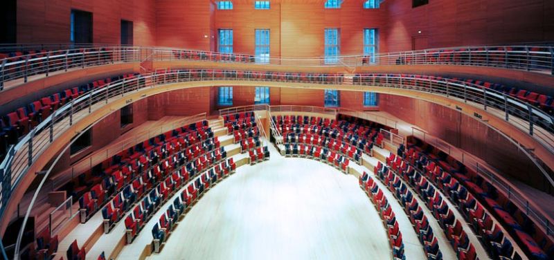 The renowned architect Frank Gehry has designed the new Pierre Boulez Saal Concert Hall for pianist and conductor Daniel Barenboim. Earlier the hall had a conventional look with straight lines. But such seating pattern is not favorable acoustically, as most of the sound dies while reaching to certain people inside the hall. For better reverberation and quality surround sound, Mr. Gehry presented an oval concert hall design. Moreover, the orchestra will be at the center of the hall that can evenly deliver sound produced through musical instruments to each person sitting in the hall.