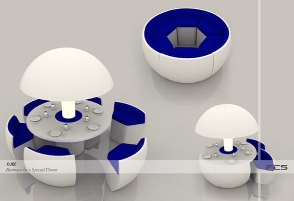 We all know that sitting down at the table over dinner has always been one of the best ways for the family to bond and connect. However, these days no one has the time to sit down for a family dinner. Turkish designer Fatih Can Sarıöz, however, feels that the concept needs to be revived and hence deals with the theme in his special dinner furniture. Dubbed as Kure, it is designed like a flower that opens up to a full-fledged dinning table. Shaped as a sphere when closed, it can occupy any corner of the house. And only when the sun sets down, you can bring Kure to life. Fitted with a light source in the center, the base too glows with blue light.