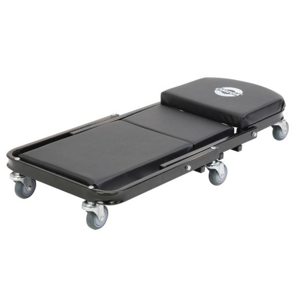 This latest mechanic creeper in the marketcan be used even by professional mechanics. If you aspire to be as good as one, you have to have professional essentials. Just like this Adjustable Creeper from Whiteside Manufacturing. It’s 44 inches in length, and is considered one of the strongest creepers around. This portable mechanics seat 2018has a ¾ inch tubing made of steel. It is coated with powder to prevent rust. The size of the rollers is 2.5 inches and it is 100% resistant to oil. The vinyl cushion can be cleaned easily. 300 lbs is the maximum weight capacity for this creeper.