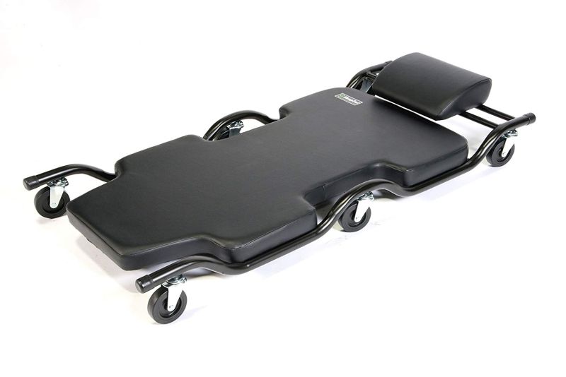 The molded body of the creeper does not have any sharp edges or seams that chafe or pinch.The latest mechanic creeper in the markethas outboard wheels’ pods which are designed in a way that you will never fall off it. Besides, the industrial-grade specifications and high durability ensures that this creeper lasts for a lifetime. Well, almost! The other great feature is the special compound the tires are made of, as the creeper rolls over the cracks, power cords, or other things lying around in your garage. No traction is lost, which ensures no slipping. All in all, a top choice for mechanics creeper for the home.