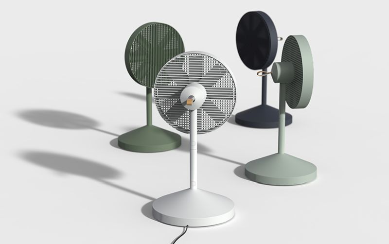 Minhao Shi designed the Hula Fans. The fan is called Hula as the fan can turn like a hula hoop. The fan has a support pole and it moves in an off centre axis. The air is collected and accelerated by the application of pressure on the mesh part on the top.
