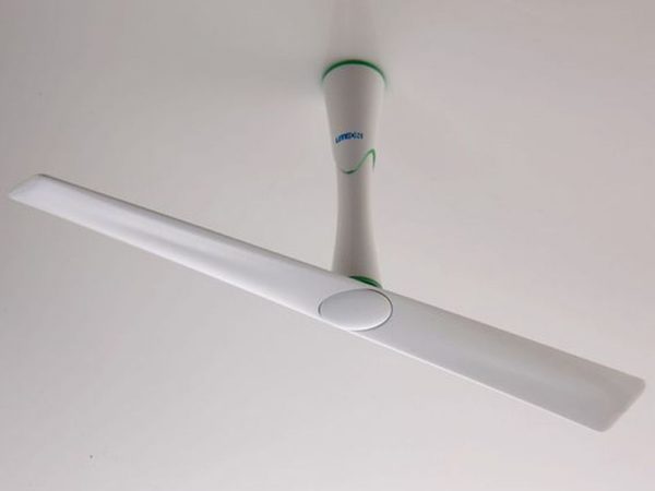 In this fan when you switch it off the mechanical energy is saved. The electromagnetic induction and the saved mechanical energy are used to create electricity. This electricity is kept in the capacitor for future use. The energy principle is used in this case and it is said that the kinetic energy required for increasing the speed of the fan is same as that needed to slow down the fan. This fan has been designed by Tab Chao & Julia Zhu.