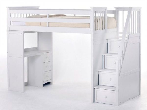 Bunk beds with stairs are particularly great if you have little children and do not want them to climb ladders. The kids can run up and down easily without you having to worry about them. The open storage is good to store their bedtime story books and favorite toys.