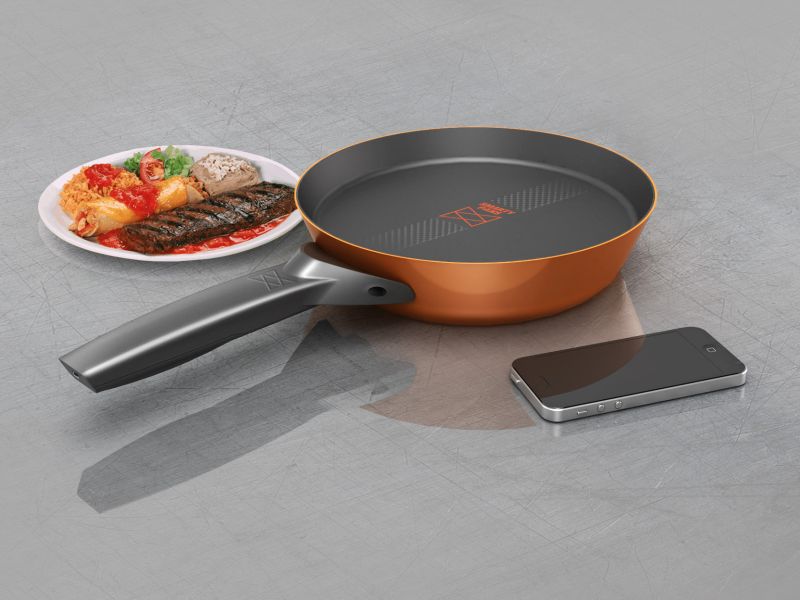 This pan is sensor enabled and connects health professionals and chefs with home cooks. The temperature and weight sensors allow the app to give detailed recipe instructions. The recipes are provided in real time, as the person is cooking the meal.